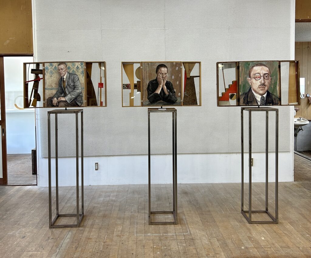 そして鳥取県の倉吉という土地にセルビアの現代美術作品が集まったきっかけは、画家ミラン・トゥーツォヴィッチの「リーリャ・ブリークのひみつの人生」(2015年)であった。この作品は、ロシアの芸術界のミューズとして知られたリーリャ・ブリーク(中央)と、夫でロシア・アヴァンギャルド運動の詩人でもあったオシップ・ブリーク(右)とリーリャの愛人であった詩人のウラジミール・マヤコフスキー(左)の三人の肖像を描いたものである。